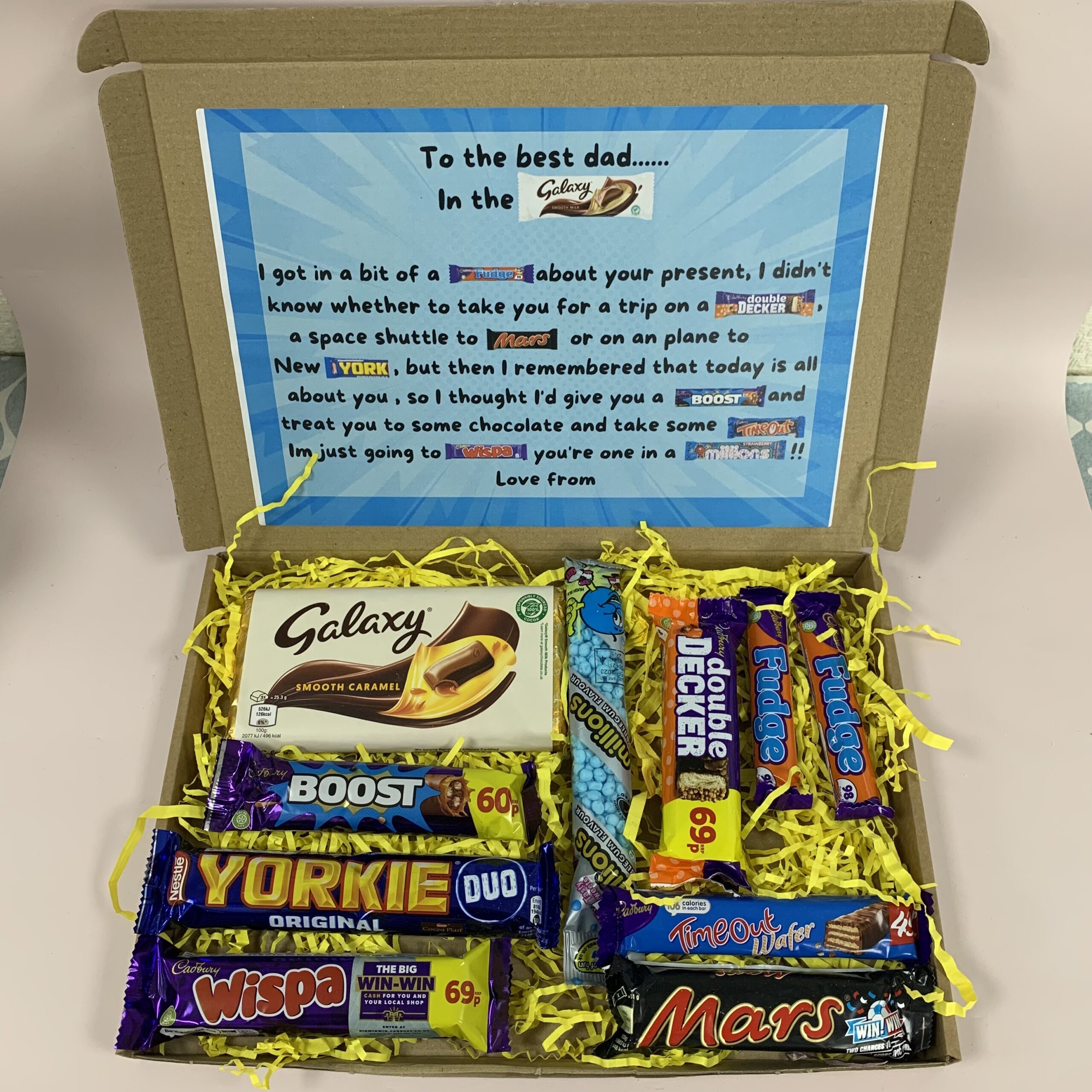 Celebrate your Dad, Grandad, or special Step Dad with a thoughtful gift he’ll truly enjoy. Perfect for fathers with a sweet tooth, this gift box is designed to delight and bring a smile.